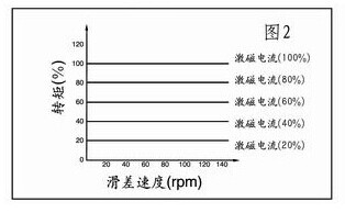 當激磁電流保持不變時,轉矩將會穩定地傳遞,不會受到轉速變化的影響。此特性用在張力控制上,只需要調節激磁電流便能準確地控制轉矩,從而達到控制張力的目的。