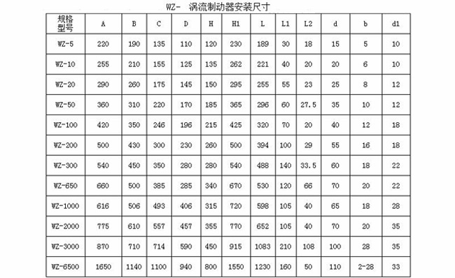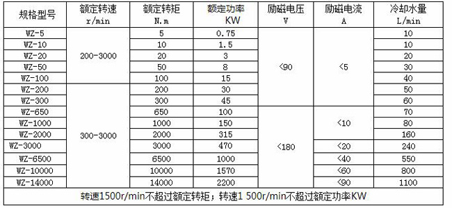 二、電渦流制動器產(chǎn)品規(guī)格及主要技術(shù)參數(shù):